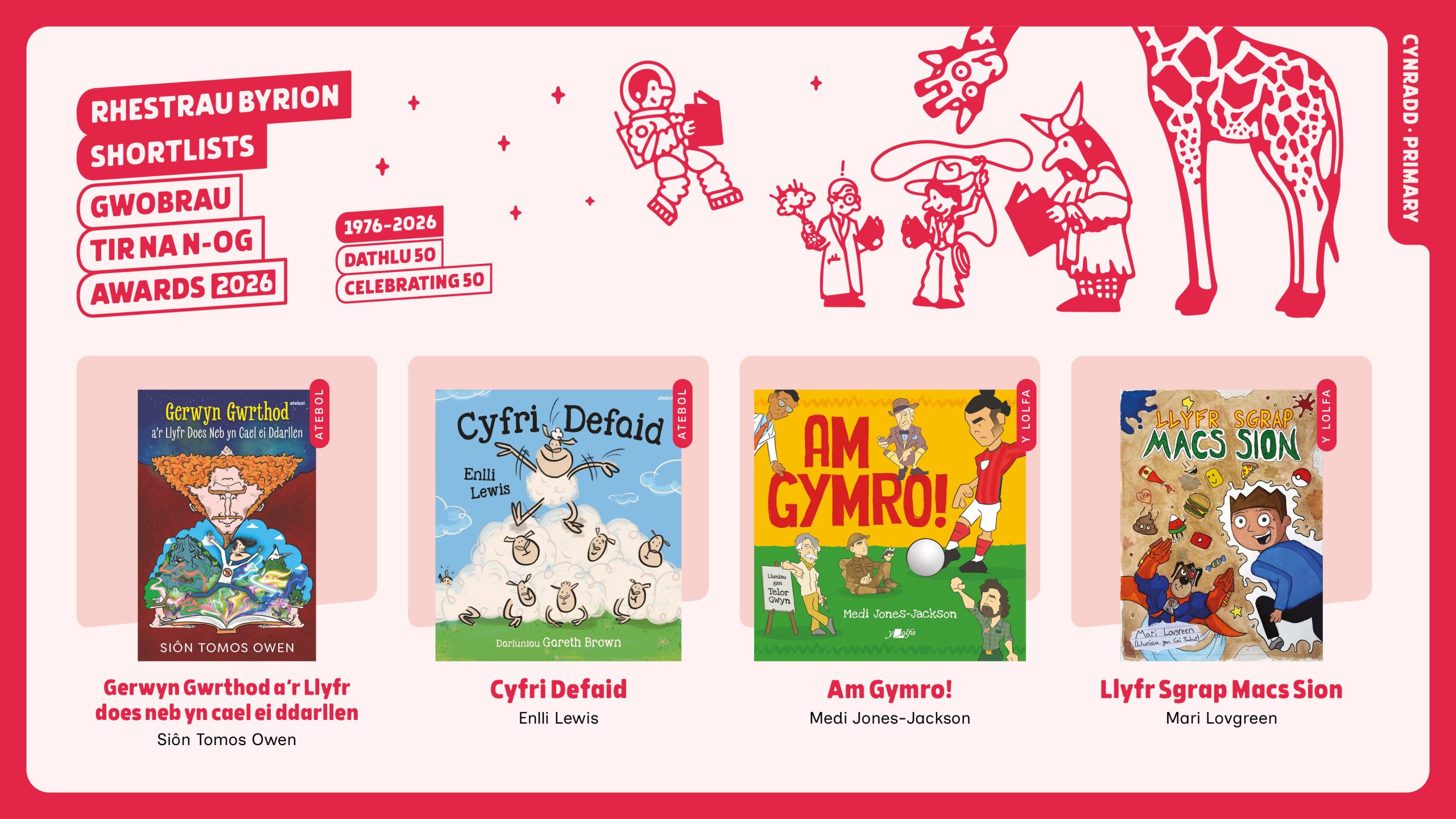 Four titles have reached the shortlist in the Welsh-language Primary category this year. They are: